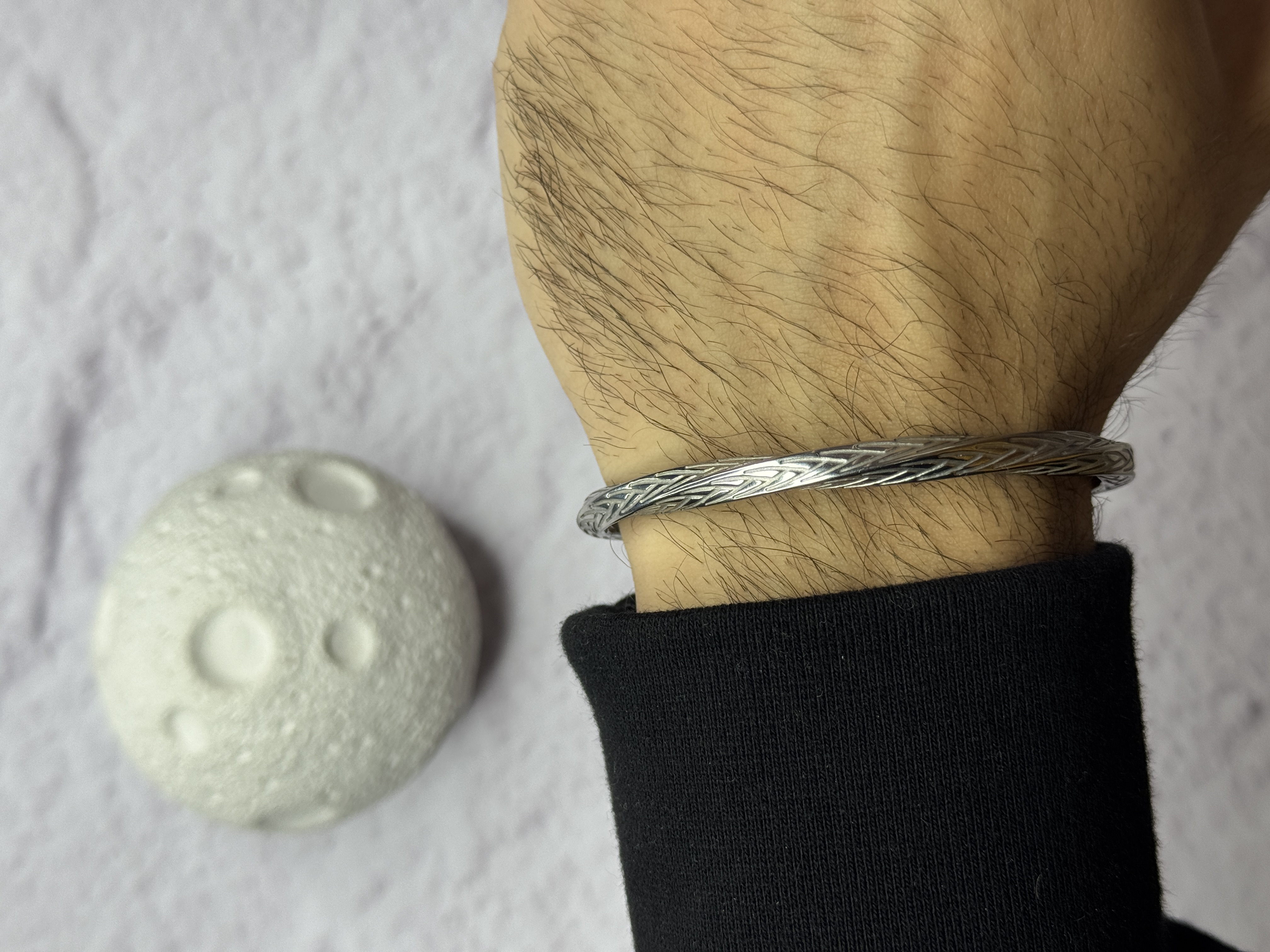 بنگل منهتن بیشتر برای افرادی طراحی شده که از زرقوبرق فراریاند و به اکسسوریهایی با شخصیت مستقل علاقه دارند. بافت منظم روی بدنه، نور را کنترلشده منعکس میکند و باعث میشود دستبند در نور طبیعی بسیار خوشفرم دیده شود. این مدل نه اسپرتِ کامل است و نه رسمی؛ دقیقاً در نقطه تعادل بین everyday luxury و استایل شهری قرار دارد.