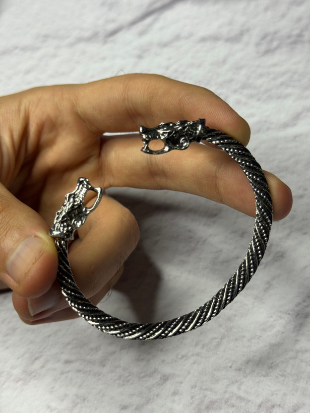 این بنگل دراگون صرفاً یک دستبند نیست؛ بیانیهای بصری از قدرت، اسطوره و هویت است. بافت طنابی بدن دستبند با دقت بالا و ریتم یکنواخت طراحی شده تا حس حرکت و انرژی را القا کند، در حالیکه سرهای دراگون با حجمپردازی عمیق و جزئیات دقیق، نقش مجسمهای واقعی روی دست ایفا میکنند.