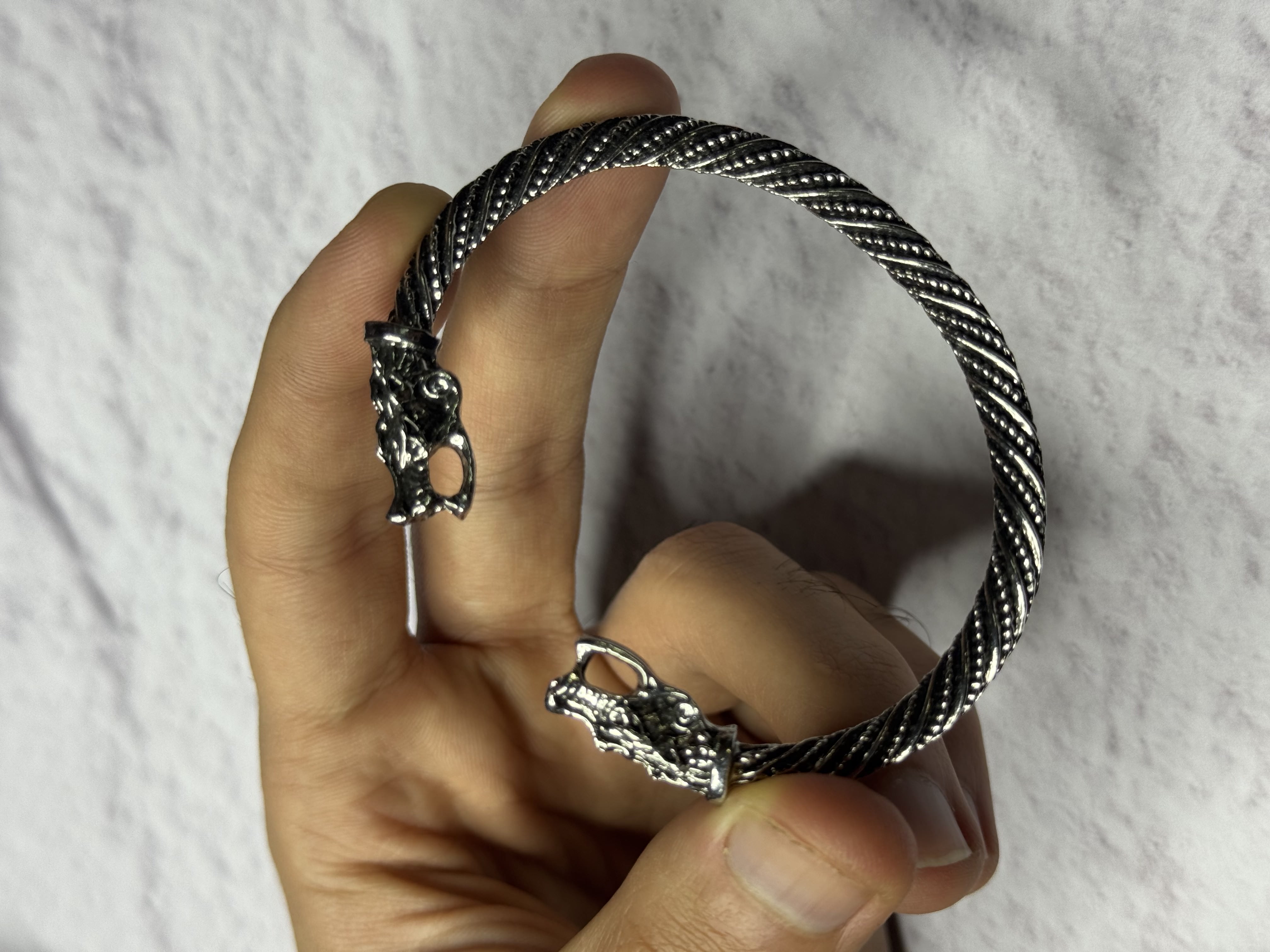 این بنگل دراگون صرفاً یک دستبند نیست؛ بیانیهای بصری از قدرت، اسطوره و هویت است. بافت طنابی بدن دستبند با دقت بالا و ریتم یکنواخت طراحی شده تا حس حرکت و انرژی را القا کند، در حالیکه سرهای دراگون با حجمپردازی عمیق و جزئیات دقیق، نقش مجسمهای واقعی روی دست ایفا میکنند.