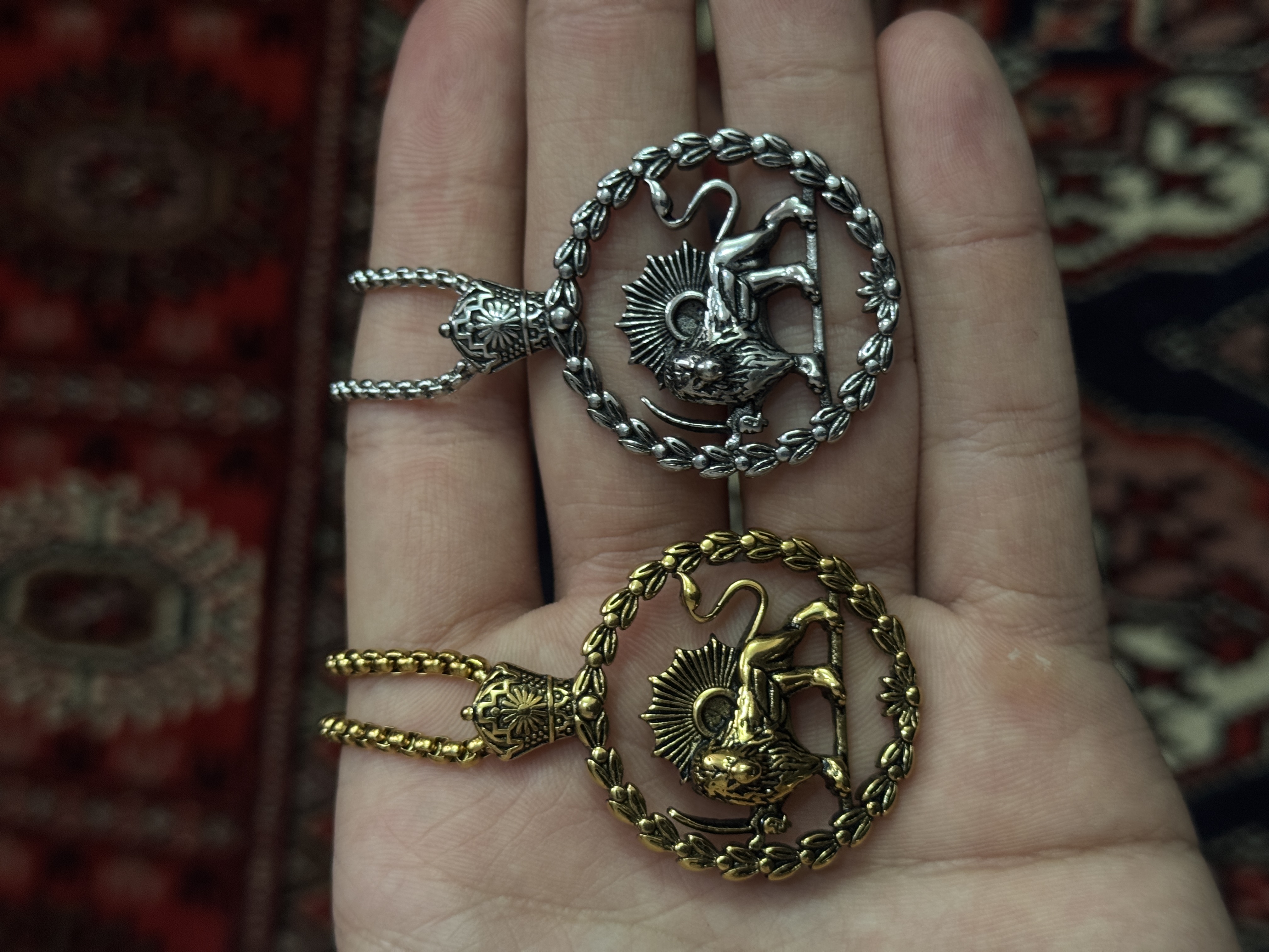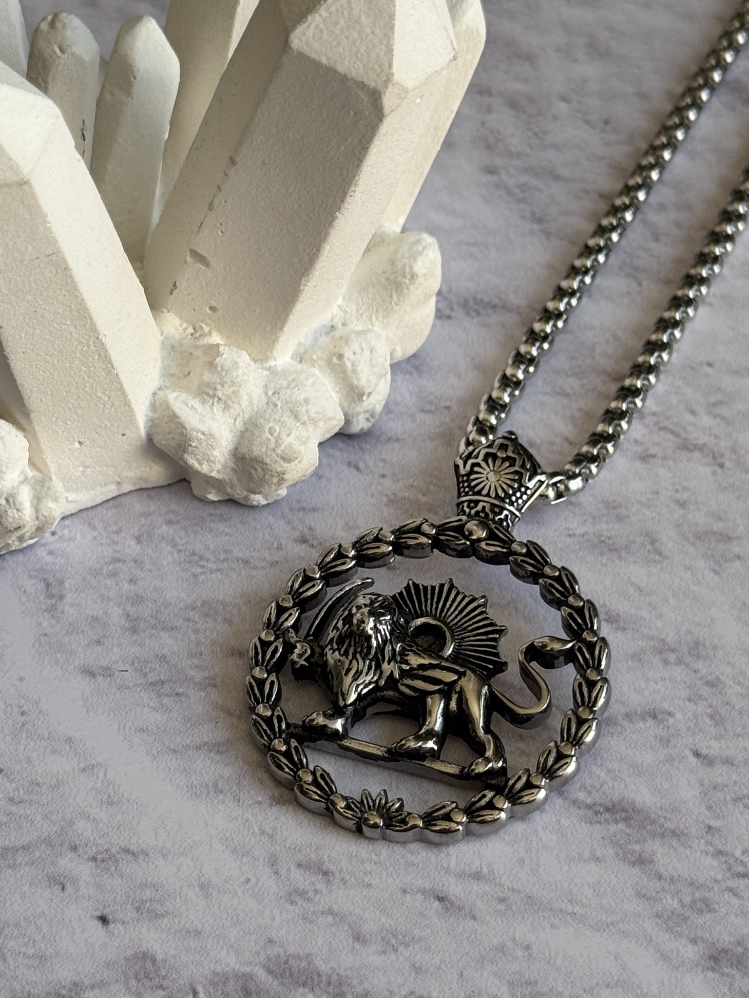 جزئیات چهره شیر و پرتوهای خورشید با دقت اجرا شده و عمق مناسبی دارند که زیر نور جلوهای چشمگیر ایجاد میکند. وزن پلاک متعادل است و برای استفاده روزانه کاملاً مناسب است. زنجیر مهرهای انتخاب درستی برای این نوع پلاک نمادین محسوب میشود، چون حس رسمی و اصیل آن را حفظ میکند.