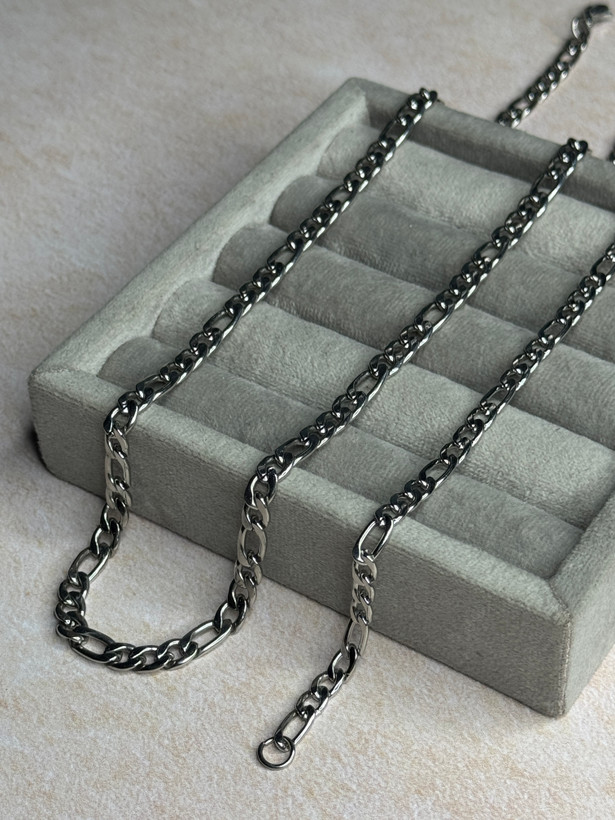 زنجیر فیگارو بهدلیل ریتم منظم و تناسب بصری، یکی از متعادلترین طراحیها در اکسسوری است. در این ست، ضخامت مناسب زنجیر باعث شده نه بیش از حد ظریف باشد و نه سنگین و خشن.