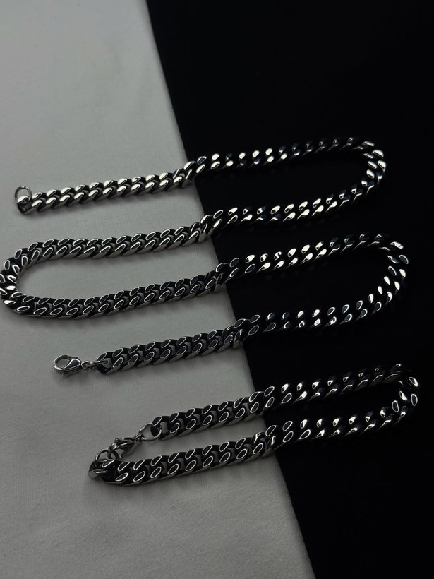 استیل 316 علاوه بر دوام بالا، باعث شده این محصول برای استفاده روزمره نیز مناسب باشد. وزن متعادل زنجیرها و قفل استاندارد، حس اطمینان و راحتی را هنگام استفاده ایجاد میکند. این ست برای افرادی که به دنبال اکسسوری مردانه متفاوت و غیر تکراری هستند، انتخابی کاملاً هوشمندانه است.